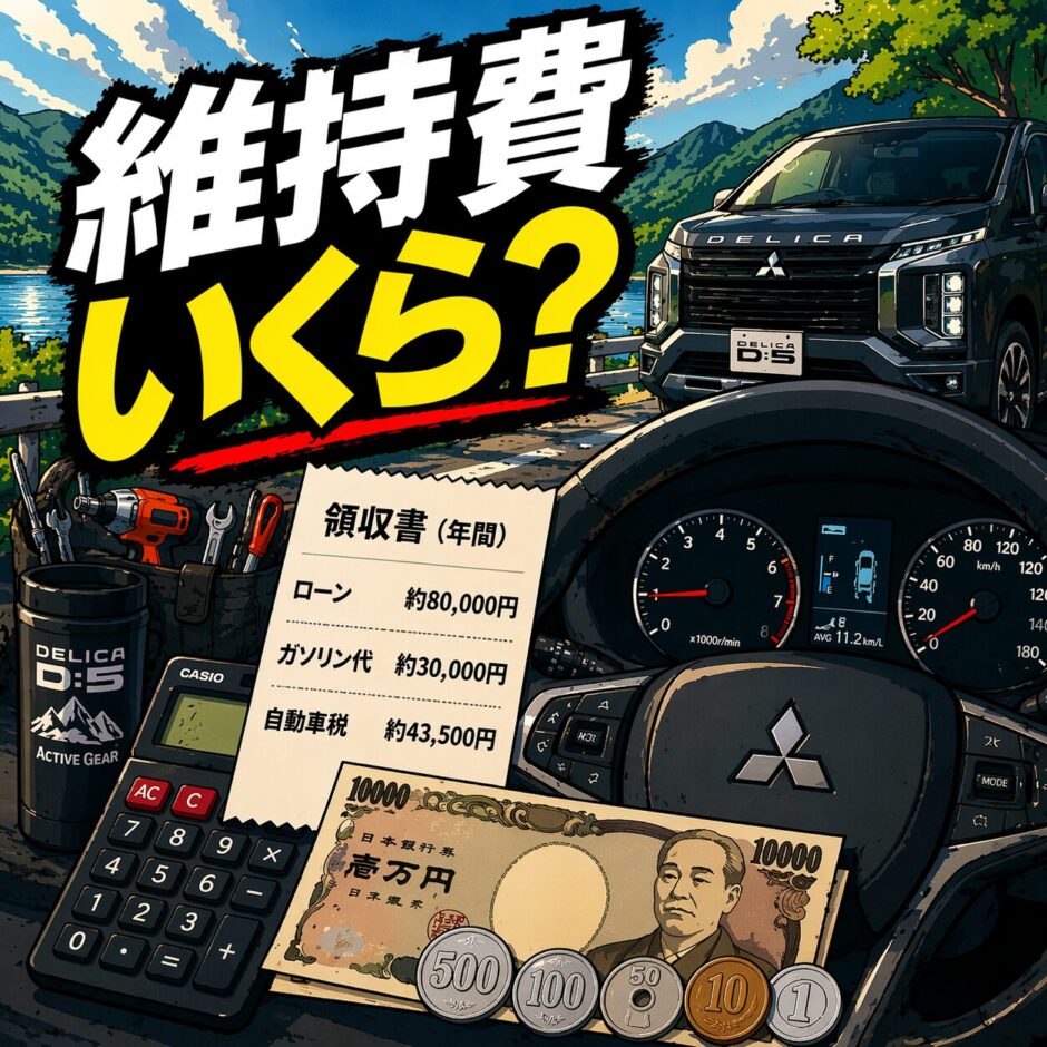 「デリカD5維持費ってどれくらいかかるの?」購入前にこれが気になって調べた人、正解です。この記事では、建設業で毎日デリカD:5を乗り倒している私が、ガソリン代・車検・保険・ローン・駐車場・税金、すべての実費を包み隠さず公開します。